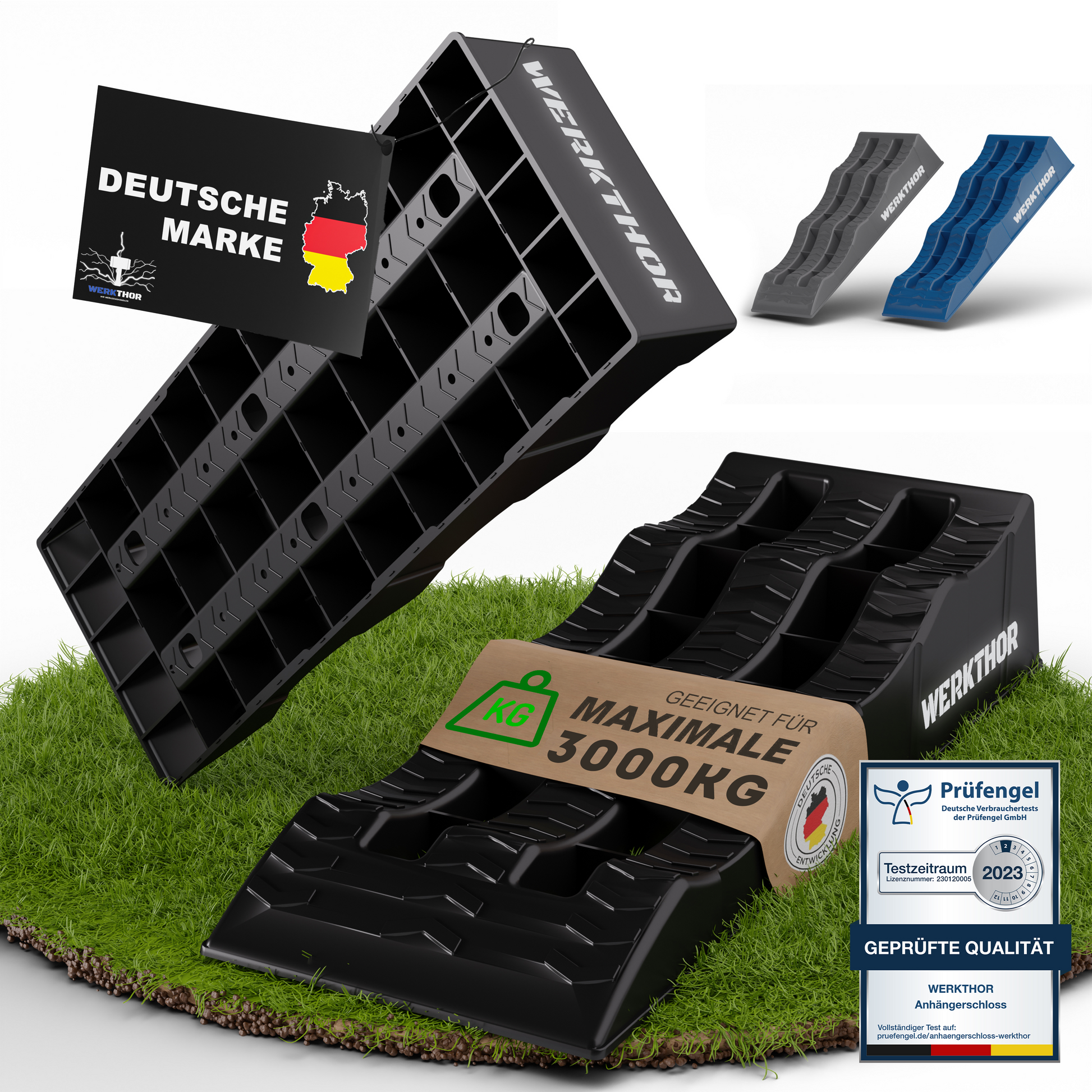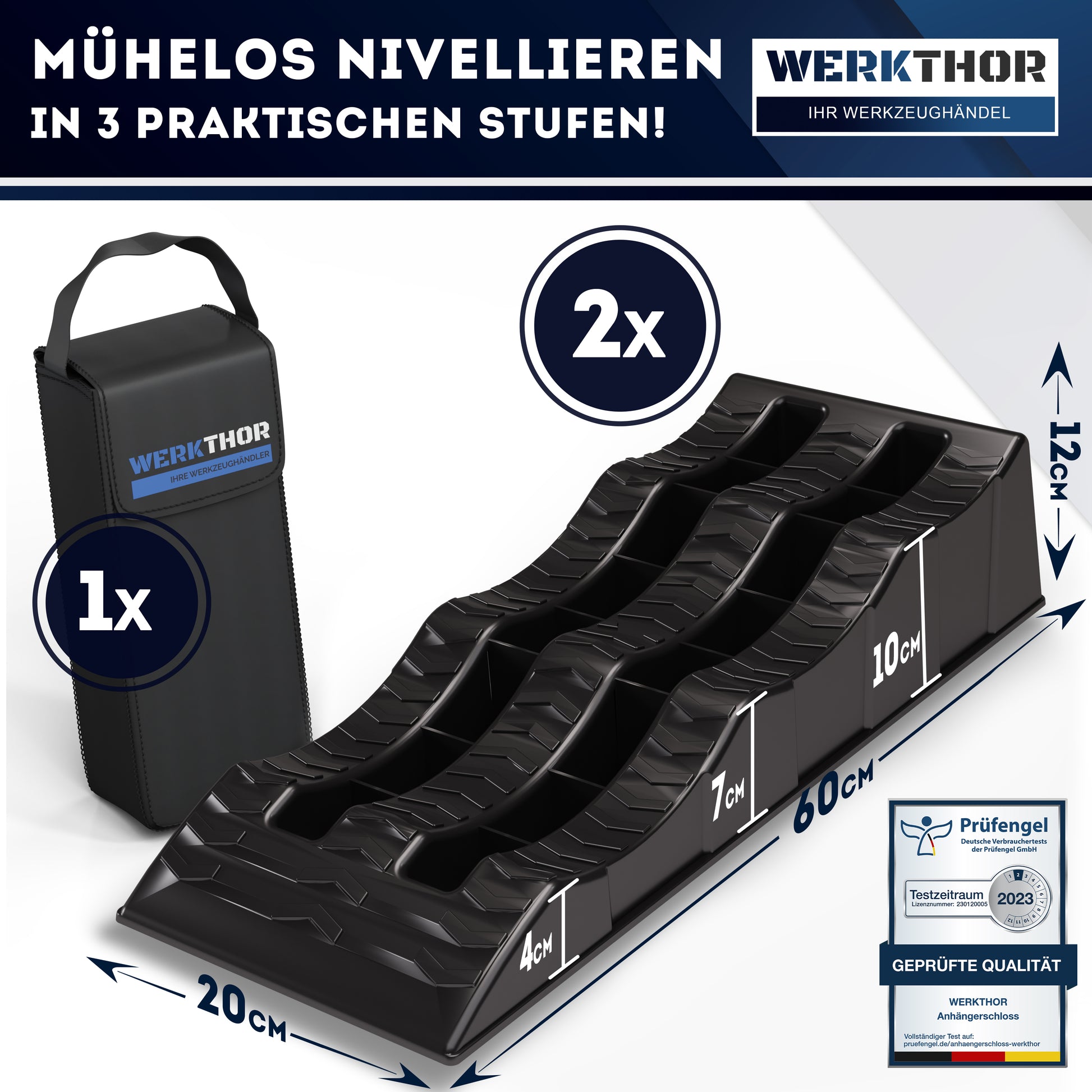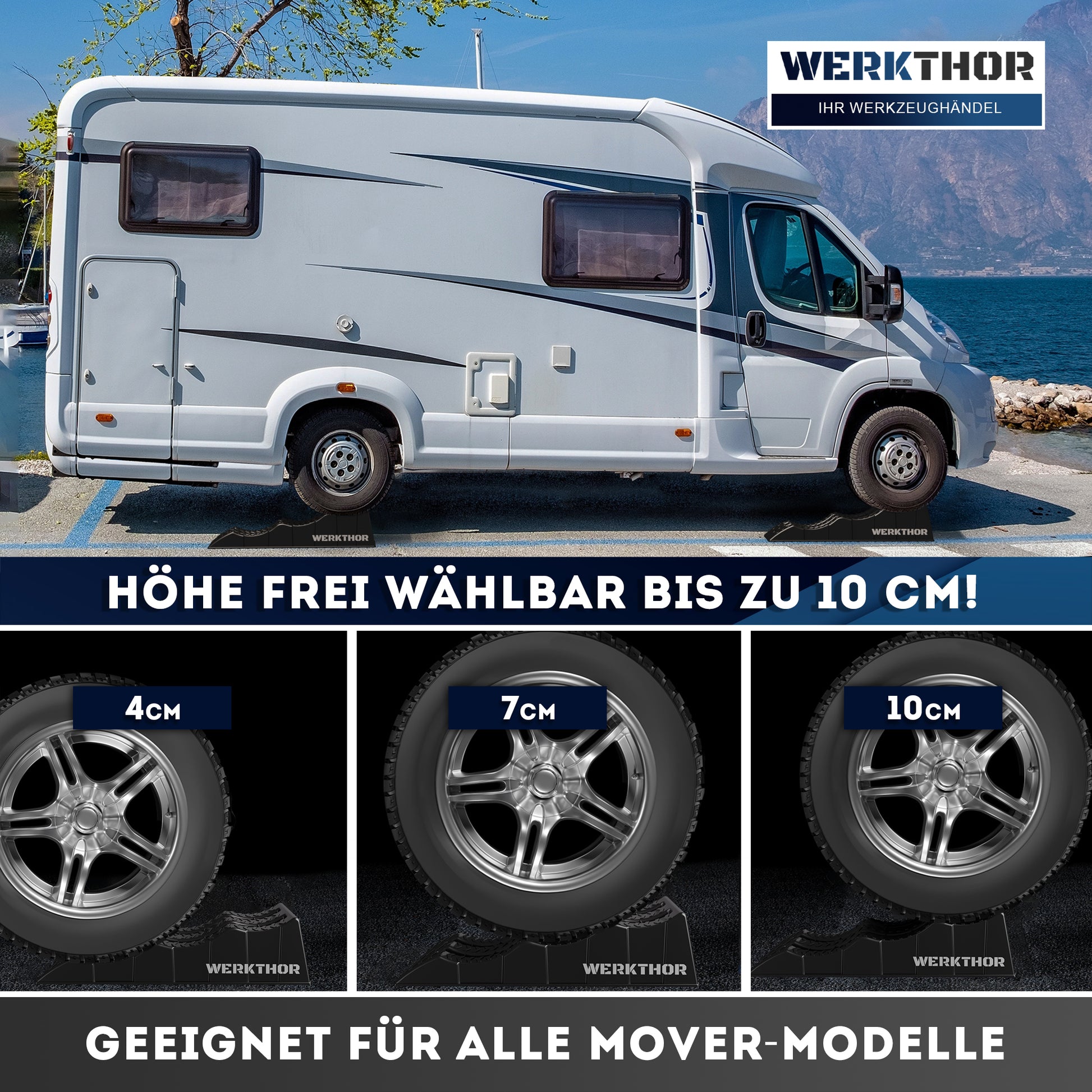 - MAINTIEN 100 % SÛR – Les cales de rampe WERKTHOR permettent un nivellement rapide et facile [jusqu'à 10 cm]. Résistantes aux intempéries et adaptées à tous les types de surfaces, qu'il s'agisse de gravier, d'herbe ou de sable !