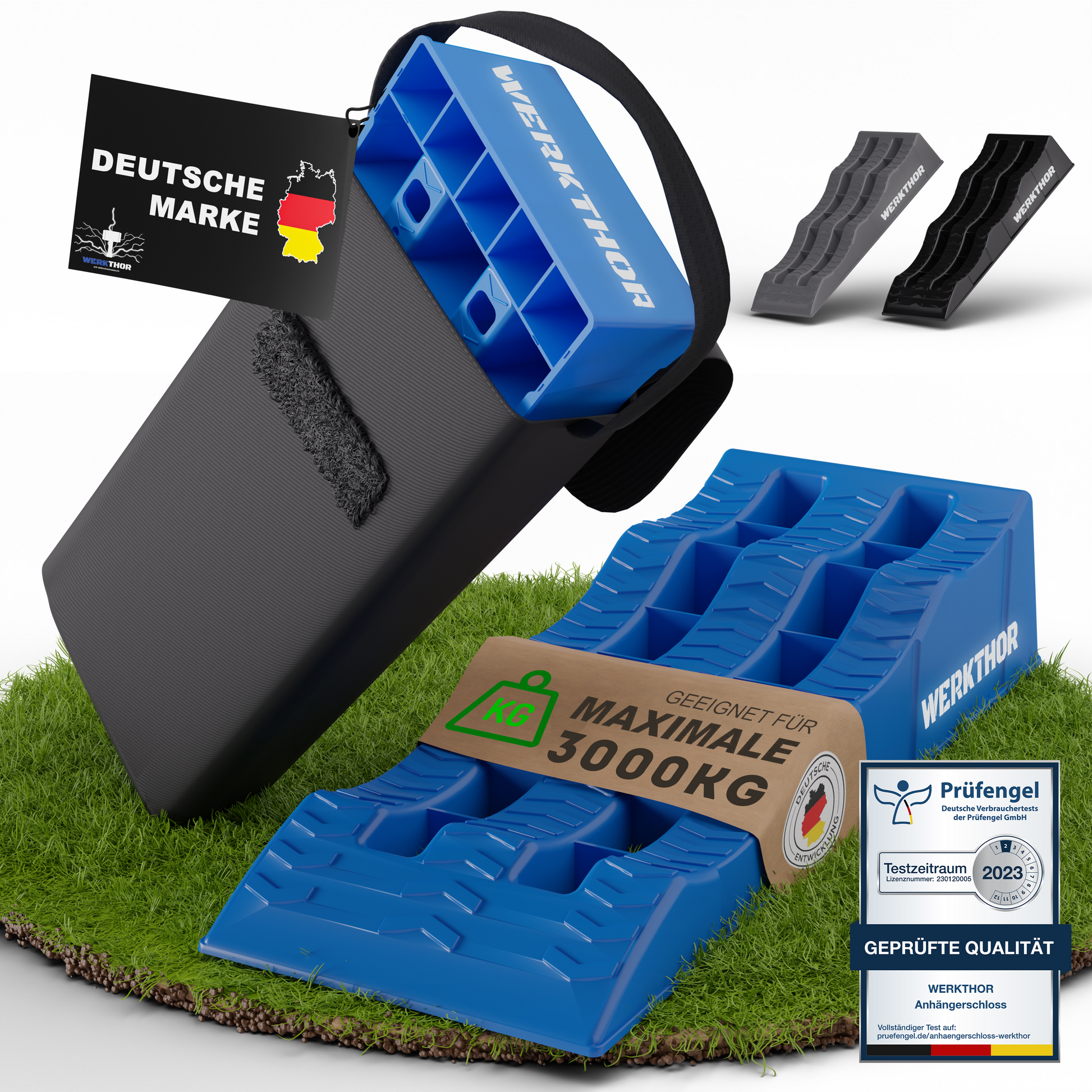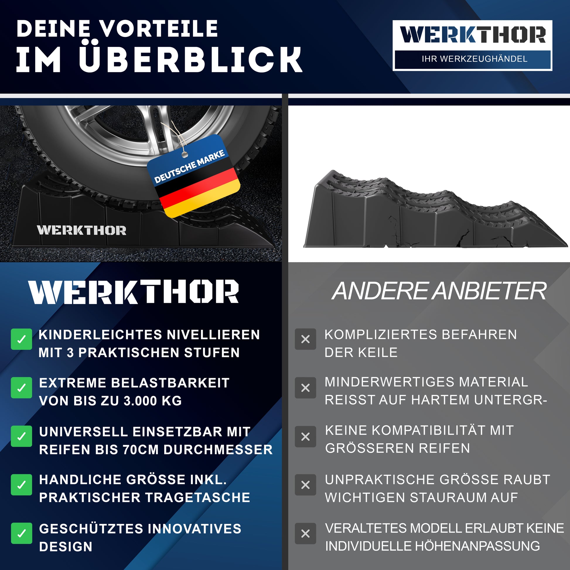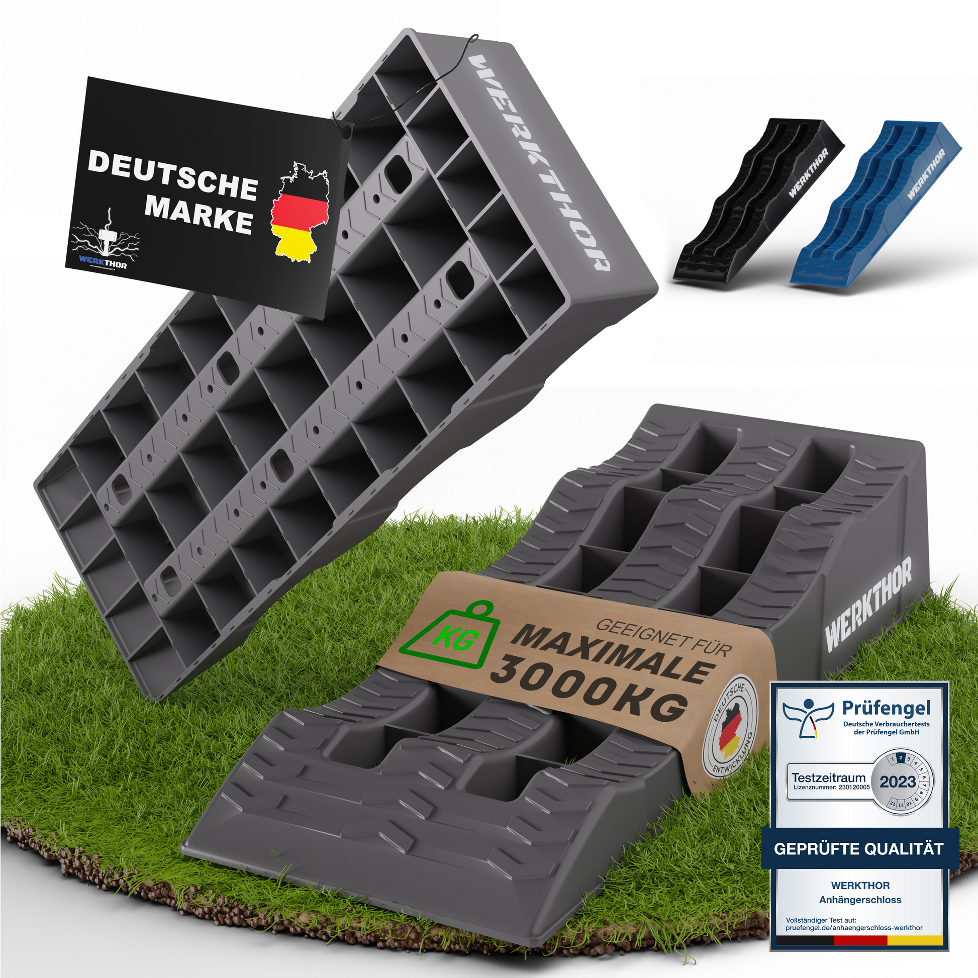- MAINTIEN 100 % SÛR – Les cales de rampe WERKTHOR permettent un nivellement rapide et facile [jusqu'à 10 cm]. Résistantes aux intempéries et adaptées à tous les types de surfaces, qu'il s'agisse de gravier, d'herbe ou de sable !