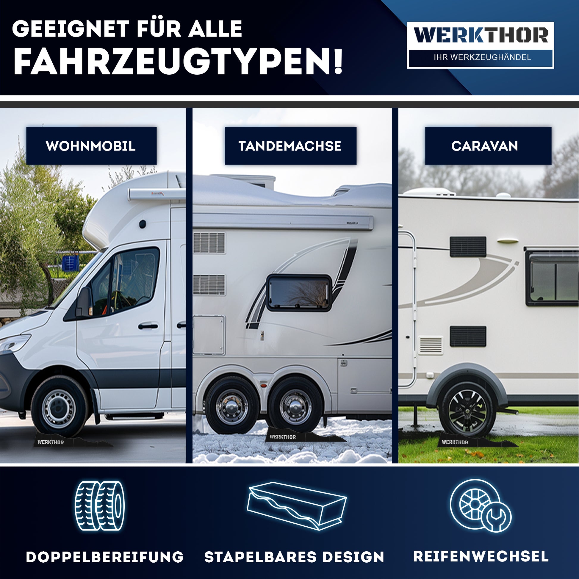 - POSITIONNEMENT À NIVEAU – Avec les rampes de caravane WERKTHOR, vous garantissez un alignement parfait. Évitez tout basculement qui pourrait gêner le sommeil, la cuisine ou la douche – idéal pour votre confort !