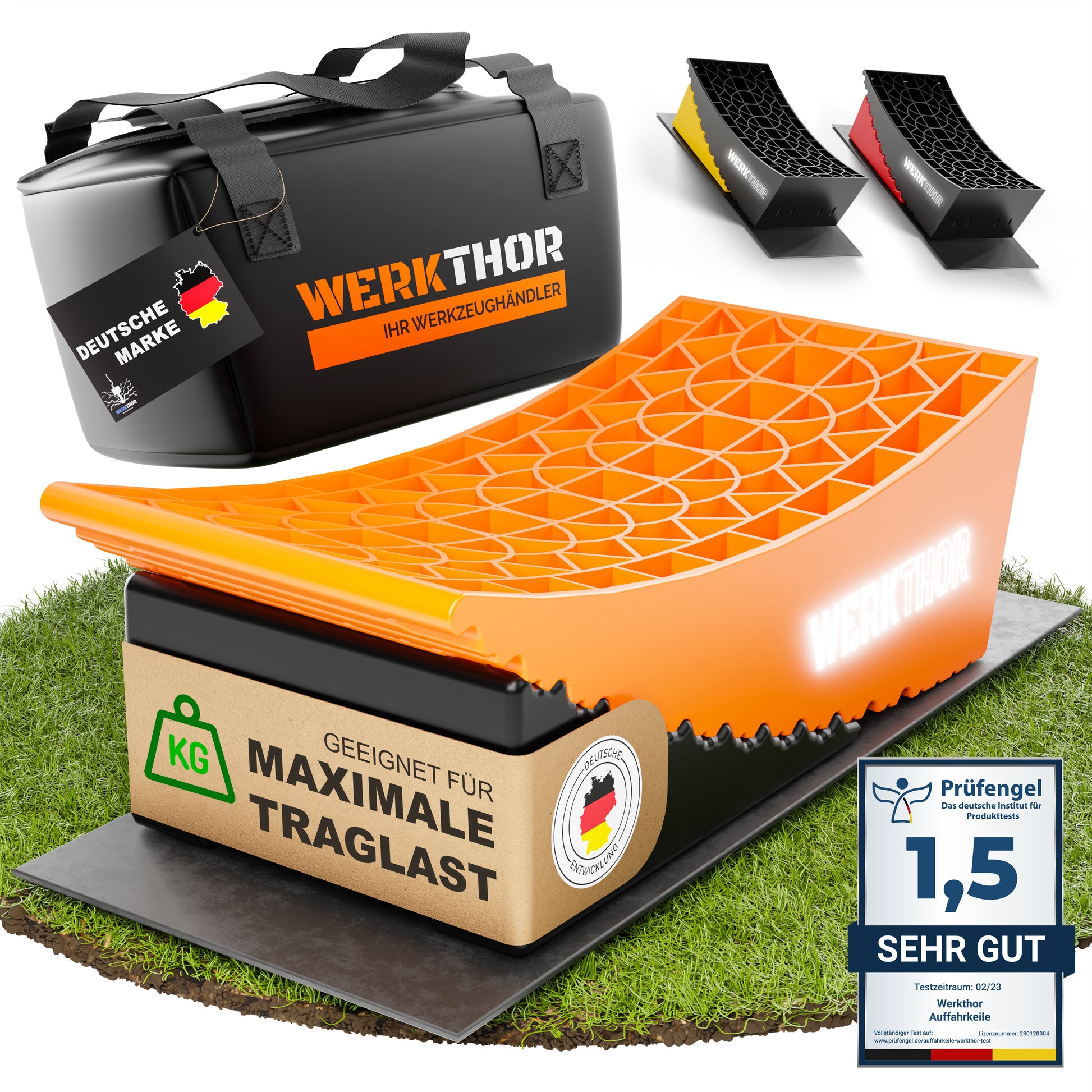 • KIT PRATIQUE ET COMPLET - Le kit complet WERKTHOR comprend deux cales de rampe de haute qualité et un sac de transport pratique. Testé par des experts et noté « Très bien » !
