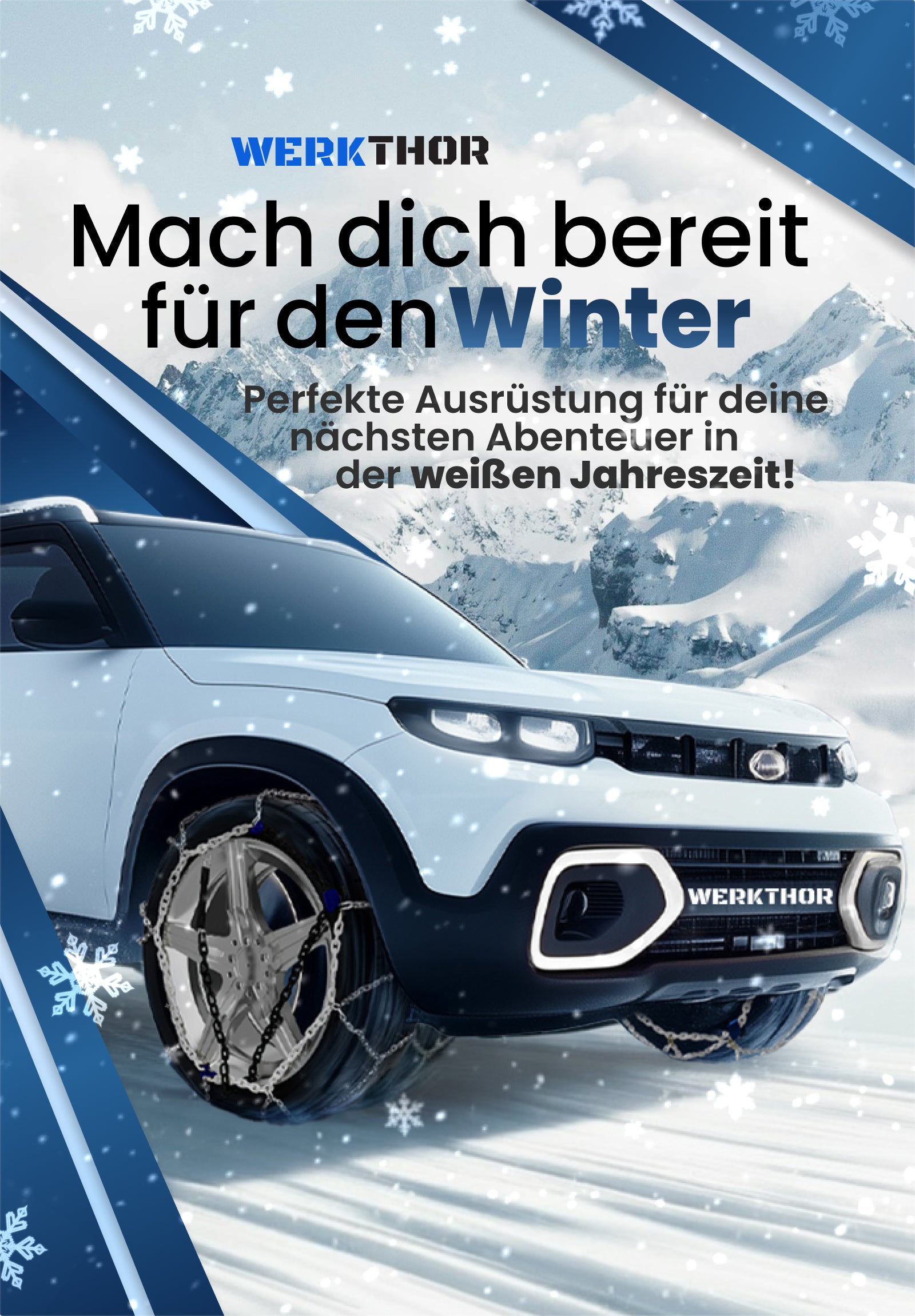 Mit Werkthor Schneeketten bist du auf Eis und Schnee in ganz Europa sicher unterwegs. Unsere robusten Ketten bieten optimalen Grip, einfache Montage und sind für Pkw, SUV und Transporter geeignet.