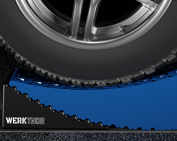 Con i cunei di sicurezza WERKTHOR, entrare in strada è semplicissimo: posiziona i cunei davanti alle ruote e procedi lentamente e con cautela fino a raggiungere l'altezza desiderata. Grazie all'ampia superficie antiscivolo, il tuo veicolo si fermerà in sicurezza. Puoi anche bloccarlo con il freno a mano e i cunei di sicurezza.