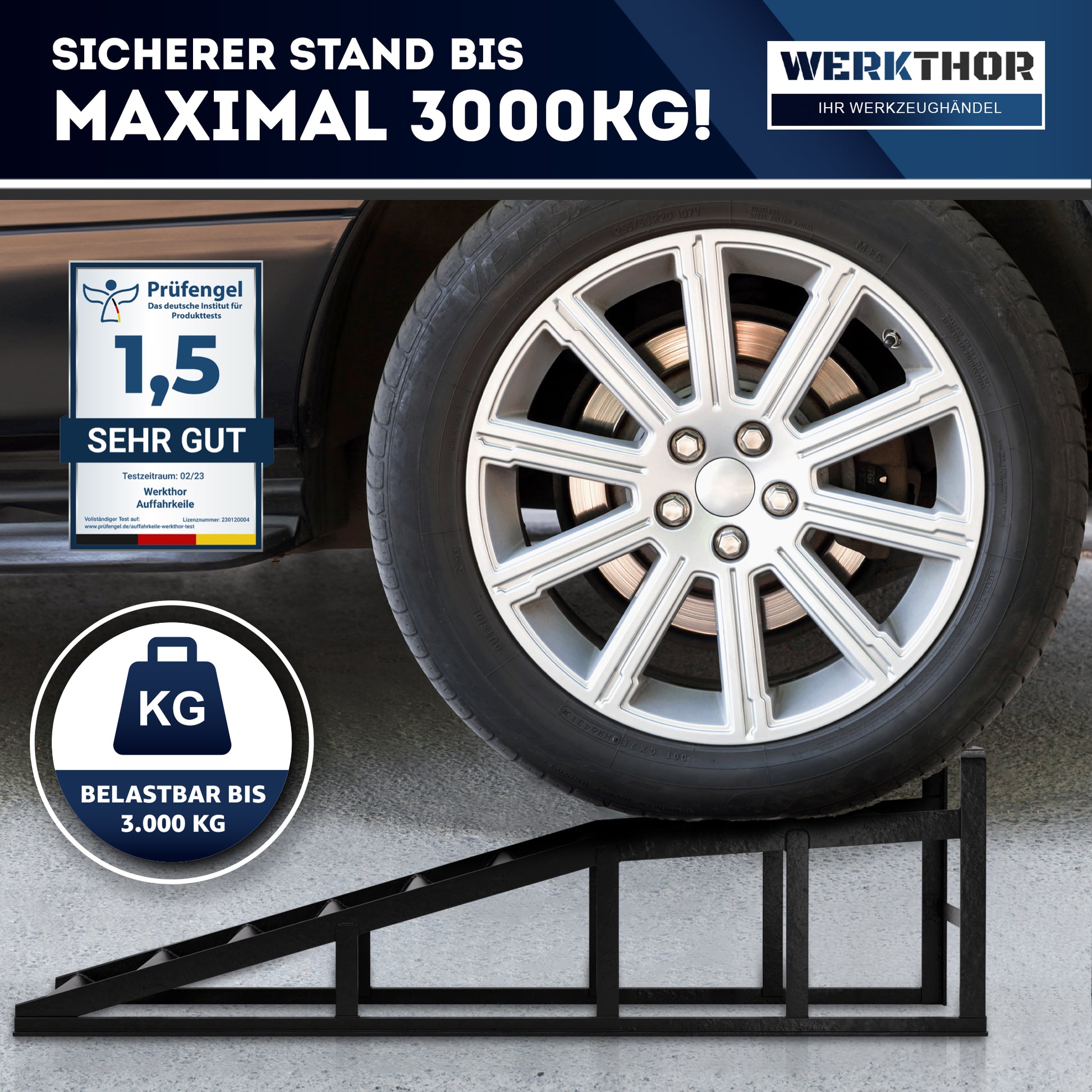 Le rampe di carico WERKTHOR sono ideali per auto, furgoni e piccoli veicoli commerciali. Con una capacità di carico fino a 2,5 tonnellate per rampa, sono perfettamente adatte alla maggior parte dei veicoli.