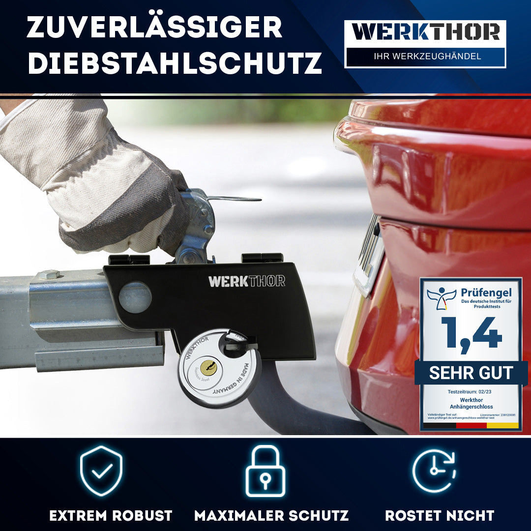 - MAXIMALER DIEBSTAHLSCHUTZ – In Deutschland verursachen Autodiebstähle jährlich Schäden von über 187 Millionen €. Mit der Anhänger Diebstahlsicherung von WERKTHOR schützt du deinen Anhänger vor Diebstahl und wirst nicht Teil dieser Statistik!
