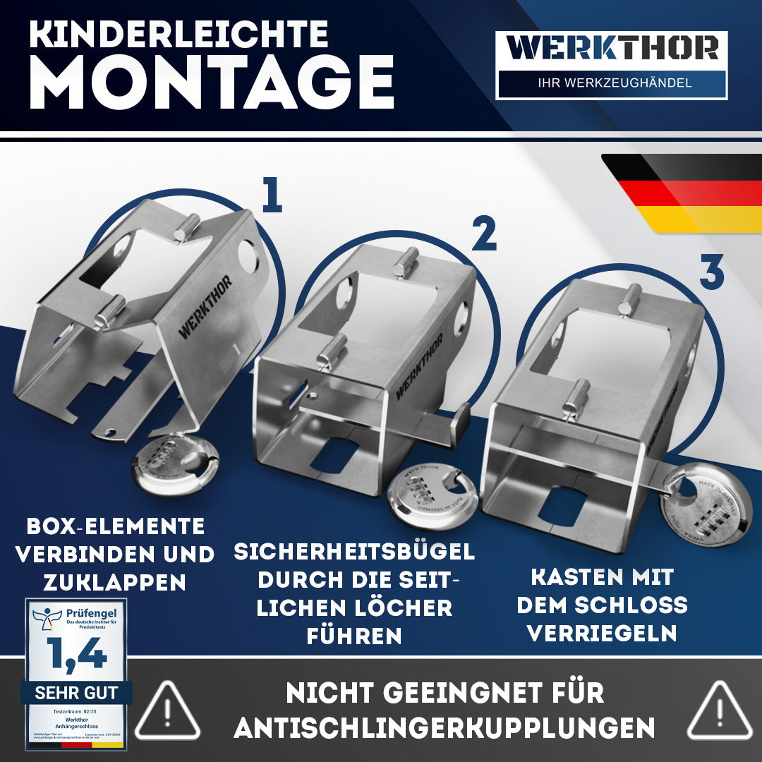 - MAXIMALER DIEBSTAHLSCHUTZ – In Deutschland verursachen Autodiebstähle jährlich Schäden von über 187 Millionen €. Mit der Anhänger Diebstahlsicherung von WERKTHOR schützt du deinen Anhänger vor Diebstahl und wirst nicht Teil dieser Statistik!